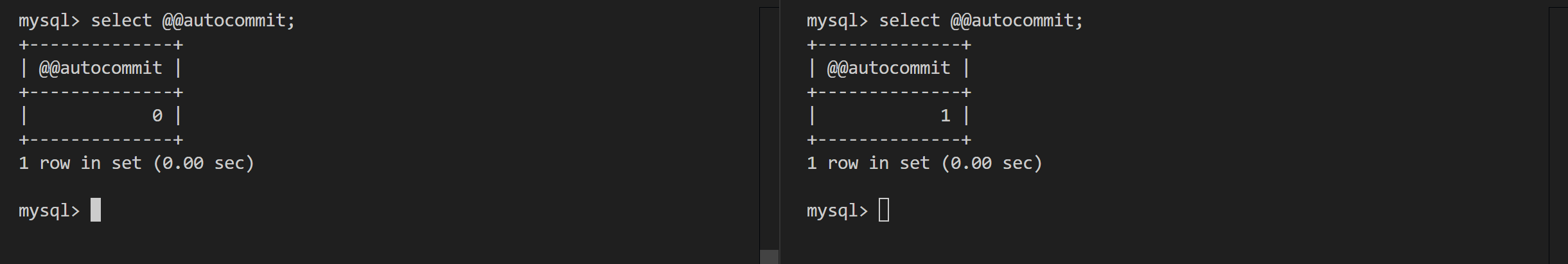 首先,左边的我设置为不自动提交,右边的设置为自动提交,隔离级别都是可重复读;