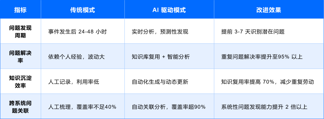 然而,这种传统流程存在明显的局限性。一方面,人工收集和分析数据的效率低下,且容易受到主观因素的影响,难以全面、准确地识别问题根源。在复杂的 IT 环境中,问题往往涉及多个系统和组件,数据分散且量大,人工分析很难把握全局。另一方面,传统流程缺乏有效的知识沉淀和复用机制,每次遇到类似问题时,都需要重新进行分析和处理,导致重复劳动,浪费时间和资源。此外,由于问题分析和解决周期较长,可能会导致问题反复出现,影响业务的正常运行。