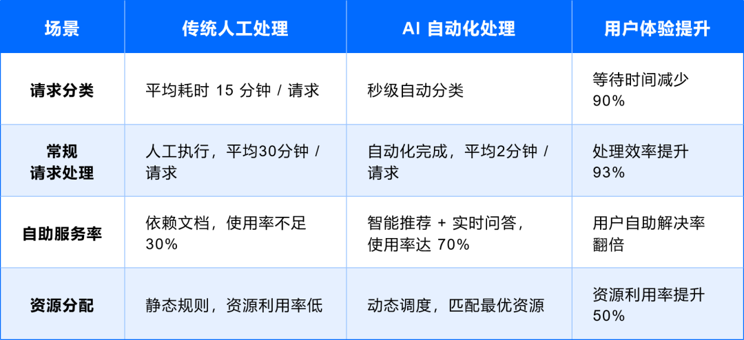 本文系统地探讨了 AI 技术对 IT 运维管理流程的深远影响,涵盖了事件管理、问题管理、变更管理和服务请求管理等核心流程。通过对比 AI 引入前后的流程变化,我们清晰地看到 AI 在提升运维效率、降低成本、增强系统可靠性等方面的巨大价值。AI 不仅实现了运维流程的自动化和智能化,还推动了运维模式从被动响应向主动预防的重大转变。