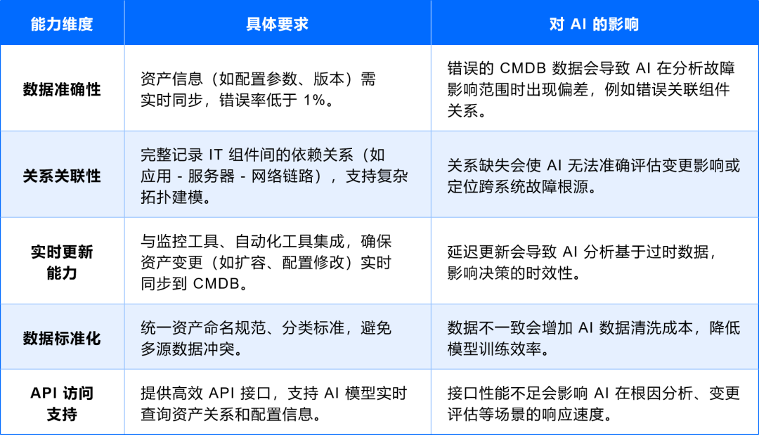 ITSM 平台作为流程管理的中枢,需具备以下能力以支持 AI 集成: