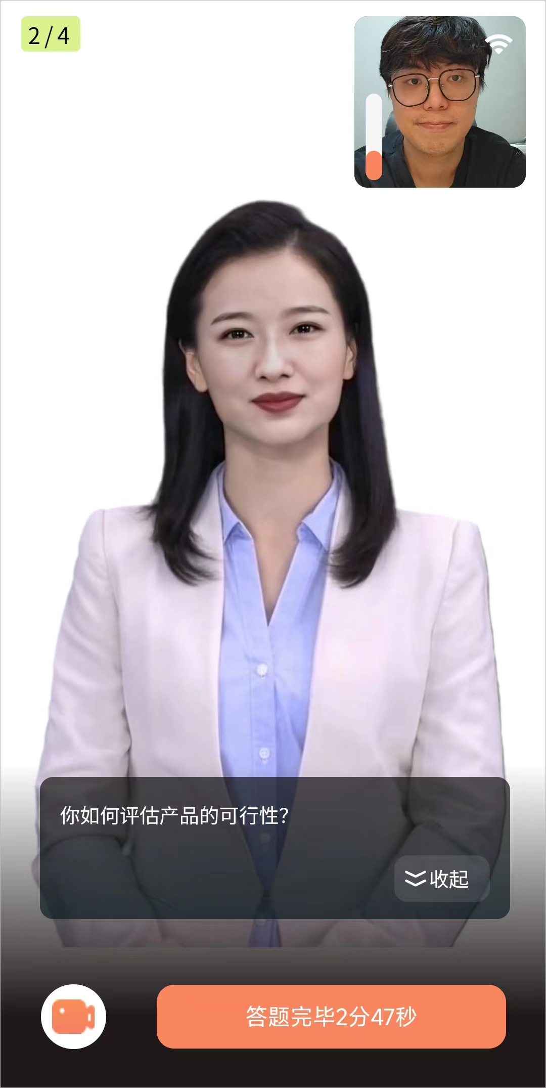 AI面试也不是啥新东西,很多年前就有人在做了,只不过在大语言模型的加持下更猛了一些而已。现在大概的做法就是,一个数字人给你发随机问题,然后你录屏回答,回答完几个问题以后,完事。