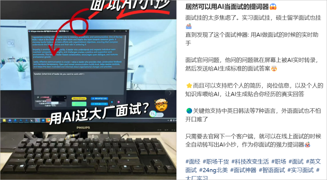 不过现在也有一些更骚的AI辅助面试的操作,也更复杂多元。