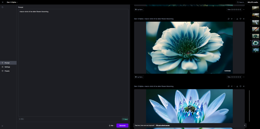 (注:在gen3中生成视频我使用的都是英文,下面的是为了方便大家看所以所有prompt才都翻译成了中文)