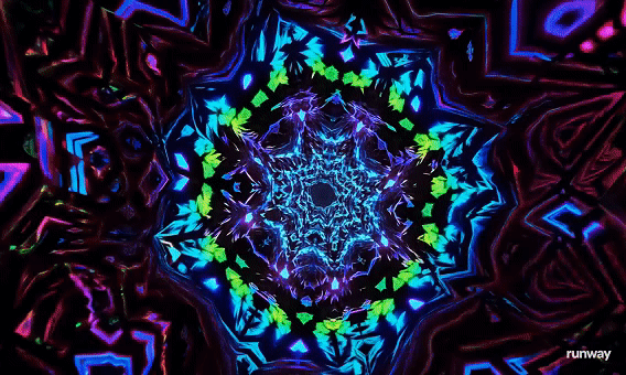 1.特写镜头,明亮霓虹色与暗背景形成鲜明对比,分形图案有节奏地扩展和收缩,氛围强烈且令人着迷。