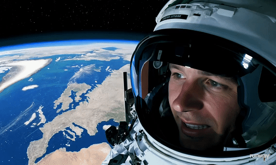 5.特写镜头,强烈对比的照明,一个宇航员在空间站外漂浮,背景中可见地球和月亮,星星在头盔面罩上反射,氛围寂静且孤立。