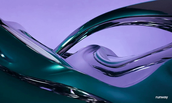 4.跟踪镜头,流动的金属表面反射环境光,形状在移动中拉伸和弯曲,营造出一种未来主义的超现实感。