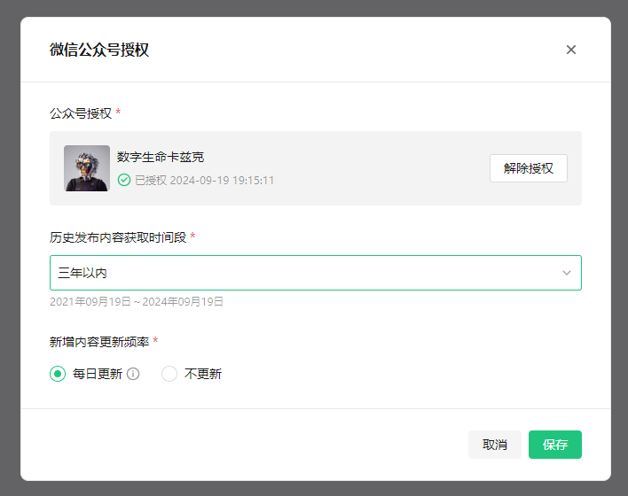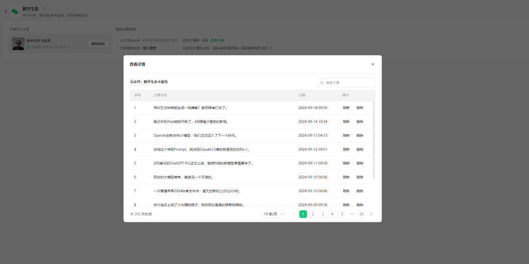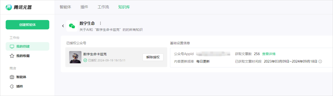 授权完毕后,再等待所有的文章向量化完毕,你就可以得到,一个每日自动根据你的公众号文章更新的知识库了。