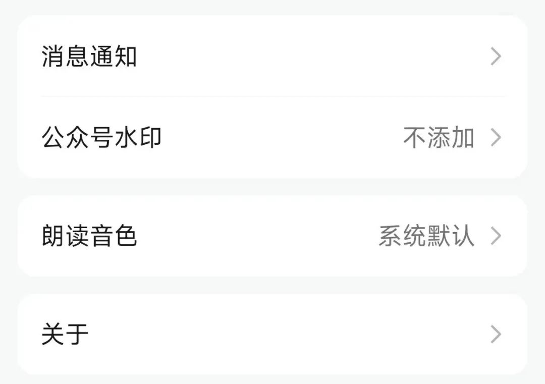 意外的发现公众号版本又更新了,更新到了2.29.1,当然版本号无所谓,重要的是,这个设置里面的新功能:朗读音色。