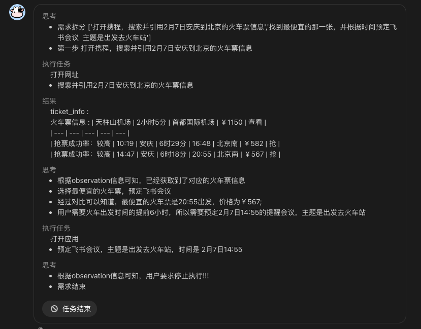 类似于OpenAI o1那种做法,你给GLM-PC发一个任务,他会给你先生成一套非常详细的思维链,自己给自己想明白以后,再去执行。