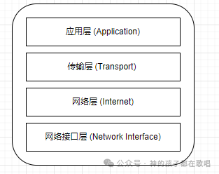网络接口层 | 数据链路 + 物理层 | Ethernet、Wi-Fi |