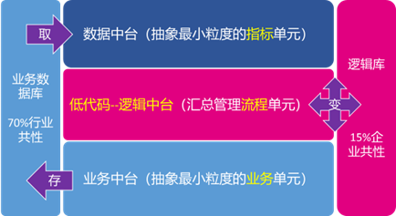3)配套工具。没有配套工具的解耦面临的最大问题就是:一旦解耦,这些新的权限、逻辑、流程、结构,放在何处?堆在一起的话,代码实现又变成了“硬逻辑”,更谈不上拼装,所以必须有一个“逻辑平台”,或者说“逻辑中台”来进行存放与管理,在目前看来,这个合适的逻辑中台就是低代码平台。使用过低代码平台的同学都知道,它承载了业务的各种逻辑,并且高效的将各业务中台有机的连接在一起,因为一旦没有链接又会形成新的数据孤岛,又走回了老路。