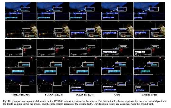 实验结果表明,我们的方法在TT100K-night、CNTSSS和CCTSDB2021三个数据集上均达到了最先进的性能水平。边缘设备部署实验进一步验证了该方法的实际有效性与实时适用性。未来工作将重点从以下三方面展开: