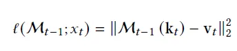 首先是记忆存储结构,论文没有在这个部分做深入的探索,只考虑了简单的多层MLP,更多对于存储网络结构的探索留给后人完成。这里多层MLP本身结构足够简单,同时对比矩阵又提供了压缩和抽象的能力。类似之前人们发现Transformer的FFN层中知识是按键值对方式进行存储,这里Titan也使用键值对来存储记忆,Key,Val分别使用多层MLP映射得到,而映射的MLP通过以下记忆更新进行持续学习。