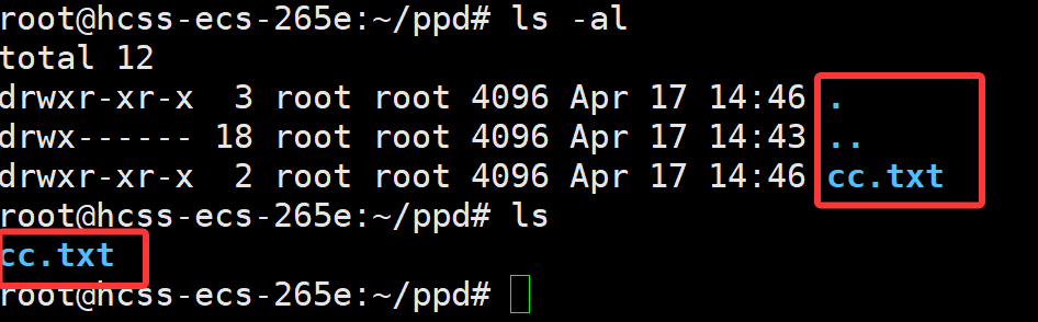 比如上面指令我用ls -al 就是有三个文件,而用ls就只有当前文件夹里的.txt文件