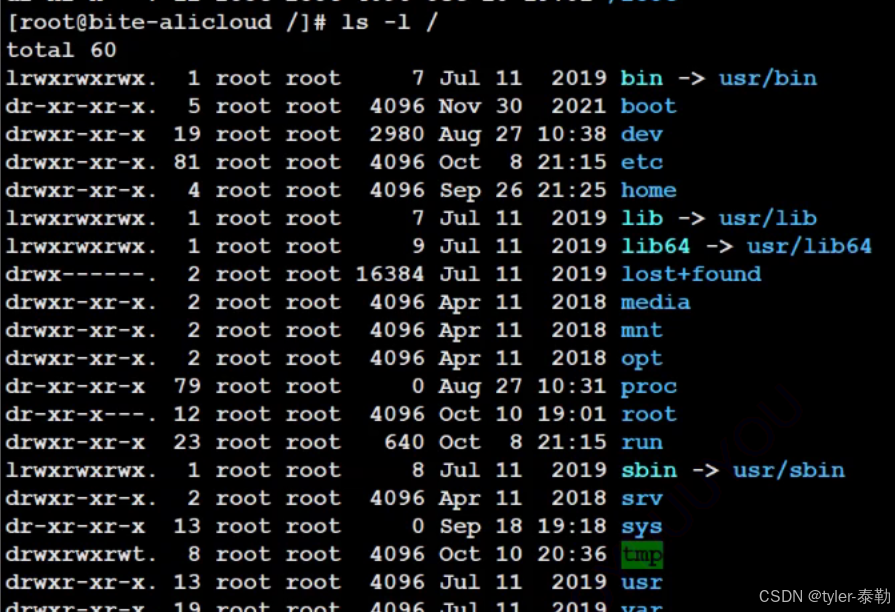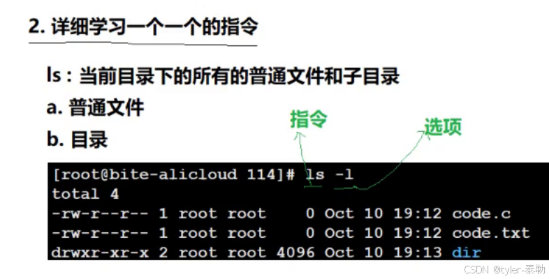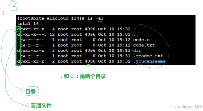 如图d开头的是目录,-开头的是普通文件 .的意思是当前目录(文件夹) …是上级路径 Linux任何路径都有 . 和 …
