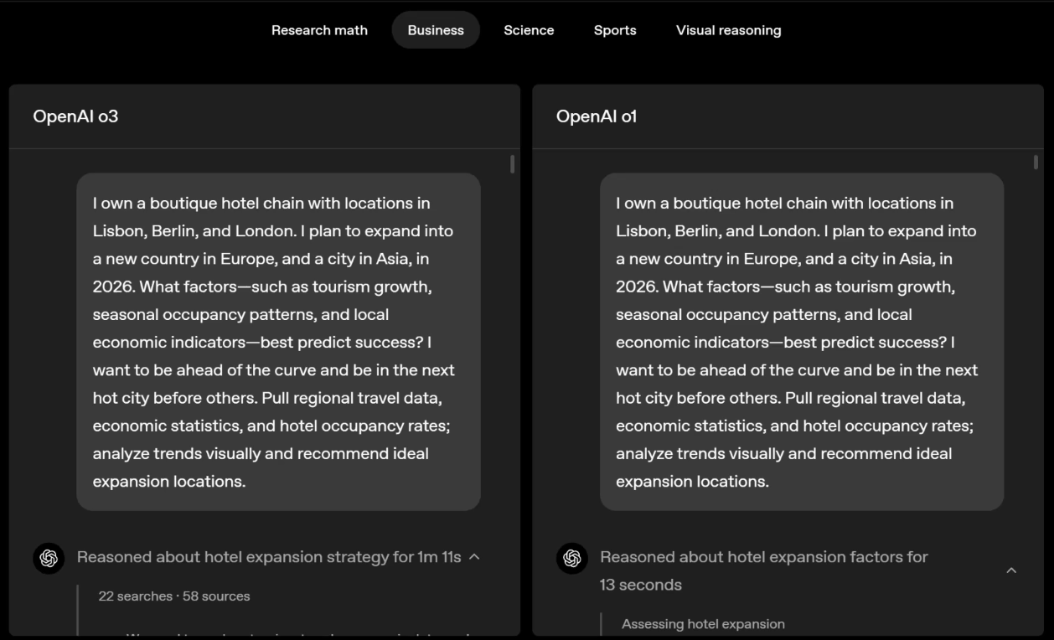 其中包括,搜索网页、用Python分析上传的文件及数据、对视觉输入进行深度推理,乃至生成图像。