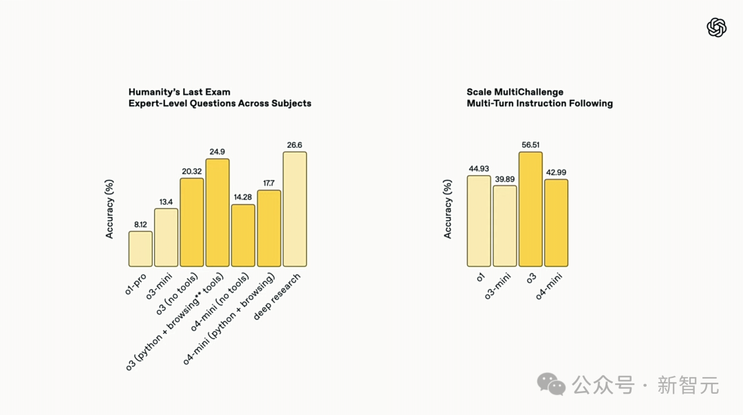 此外,OpenAI通过强化学习训练,让o3和o4-mini掌握了工具使用的智慧——不仅学会「如何用」,更懂得「何时用」。