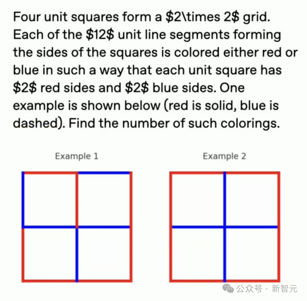 在解决AIME数学竞赛问题时,o3被要求观察2x2方格网格,并计算出满足约束条件的颜色方案数量。