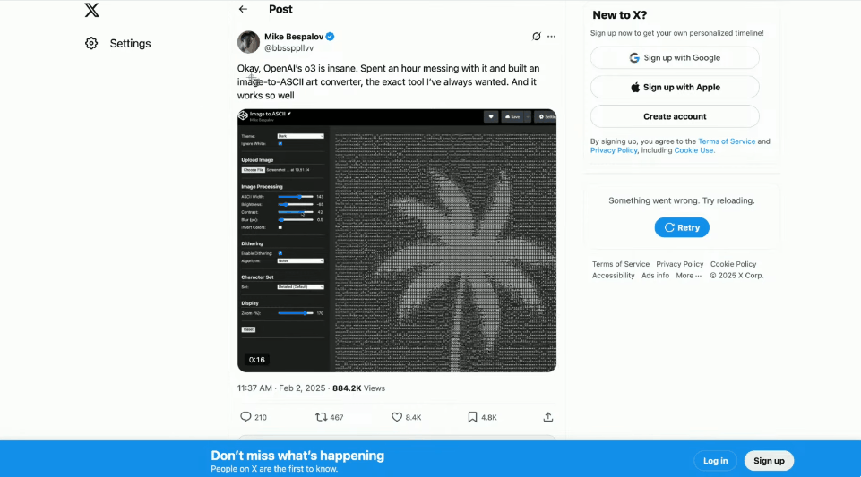 现场,OpenAI演示人员参考了网上的帖子,使用Codex和o4 Mini做了一个很酷的图片转ASCII生成器。