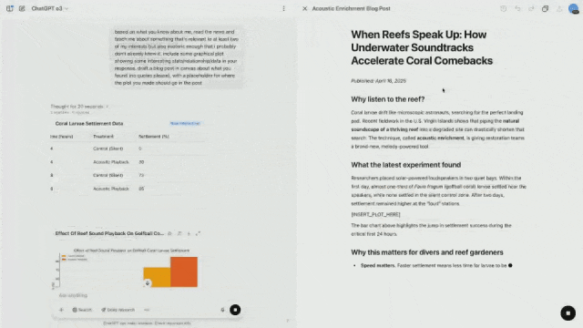 o3基于已有的了解——潜水和演奏音乐,主动思考并调用工具,找出了一些相关的有趣内容。