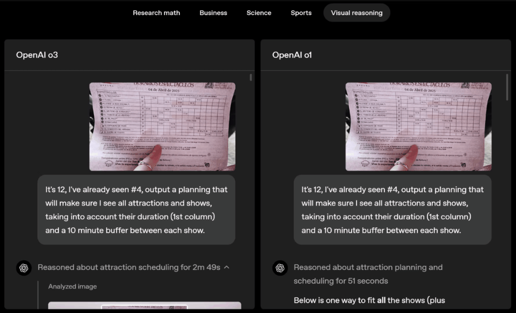 尤其是,对于图像、图表、图形分析,o3表现尤为突出,能够深入挖掘视觉输入的细节。