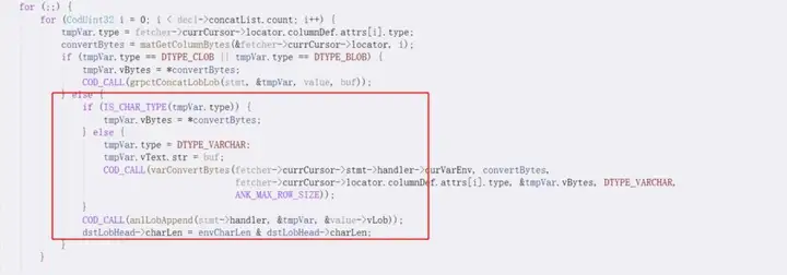 group_concat → anlLobAppend → vmAllocAndOpen → doVmAlloc → vmAllocSwap → 扩展VM空间
