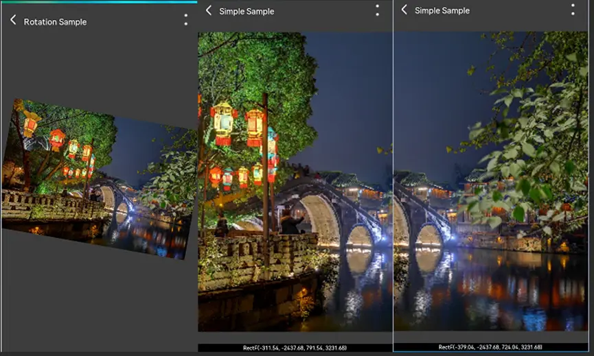 .......平移、缩放、旋转核心思想都是通过手势触发,然后获取图片变换前后的偏移量,最后更新图片的矩阵Matrix实现效果。