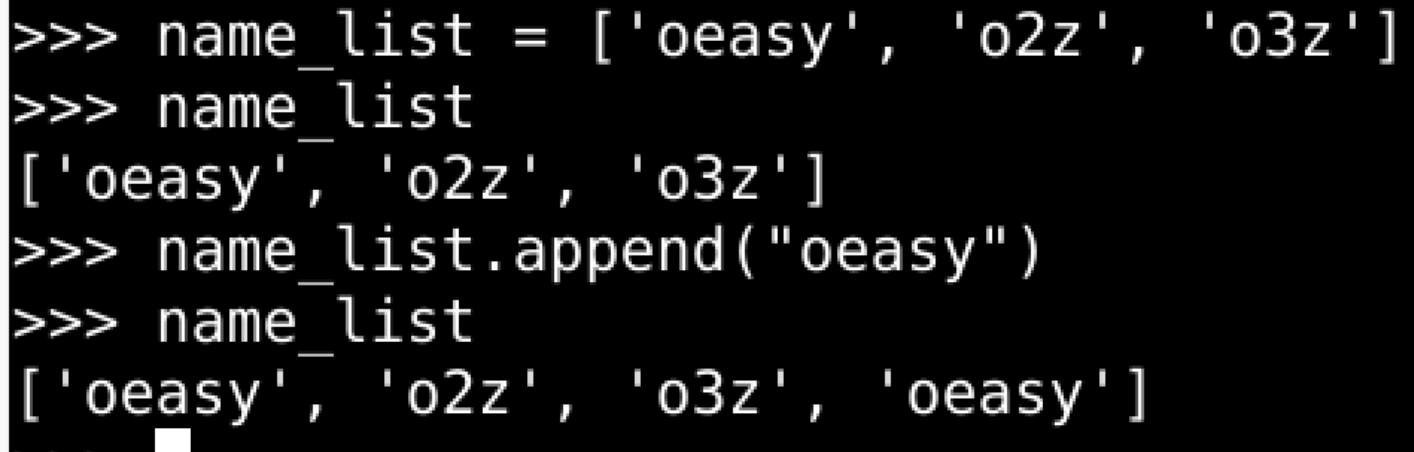同样元素 name_list = 'oeasy', 'o2z', 'o3z', 'o4z'