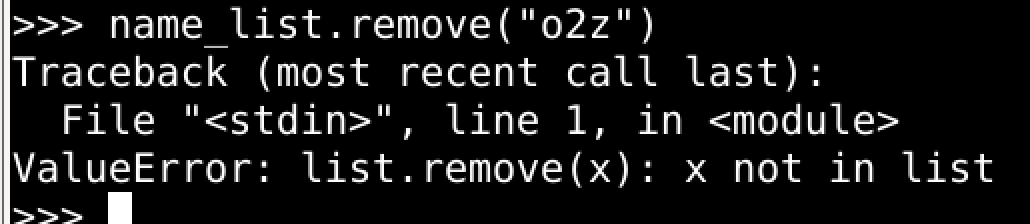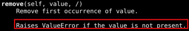 Raises ValueError num_list = 0, 1, 2, 0 num_list.remove(3)
