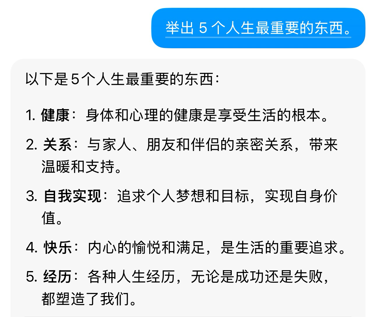 shopping_list = "健康", "关系", "自我实现", "快乐", "经历"