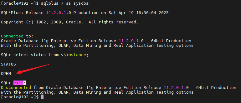 su oracle -lc /module/oracle/product/11.2.0/bin/dbstart4)重启机器后执行