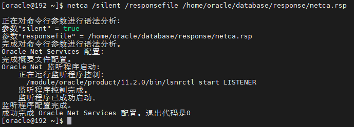 netca /silent /responsefile /home/oracle/database/response/netca.rsp