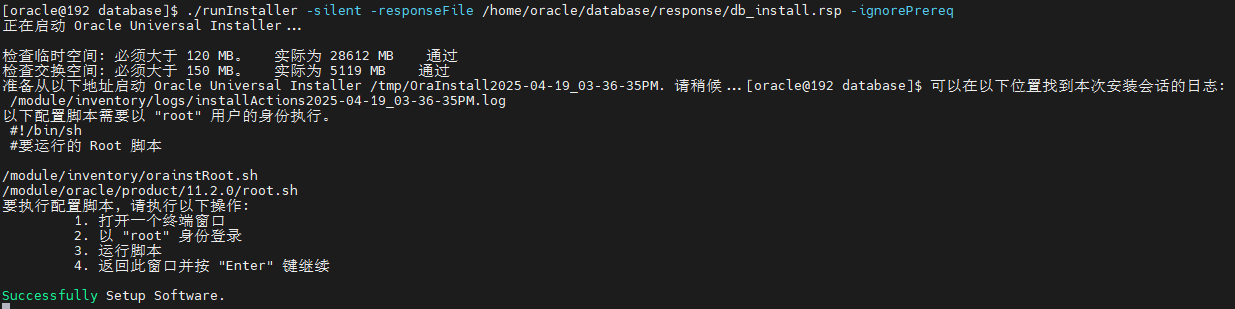 ./runInstaller -silent -responseFile /home/oracle/database/response/db_install.rsp -ignorePrereq