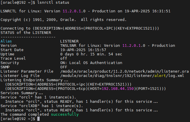 su oracle -lc "/module/oracle/product/11.2.0/bin/lsnrctl start" #加上引号才能把空格后的