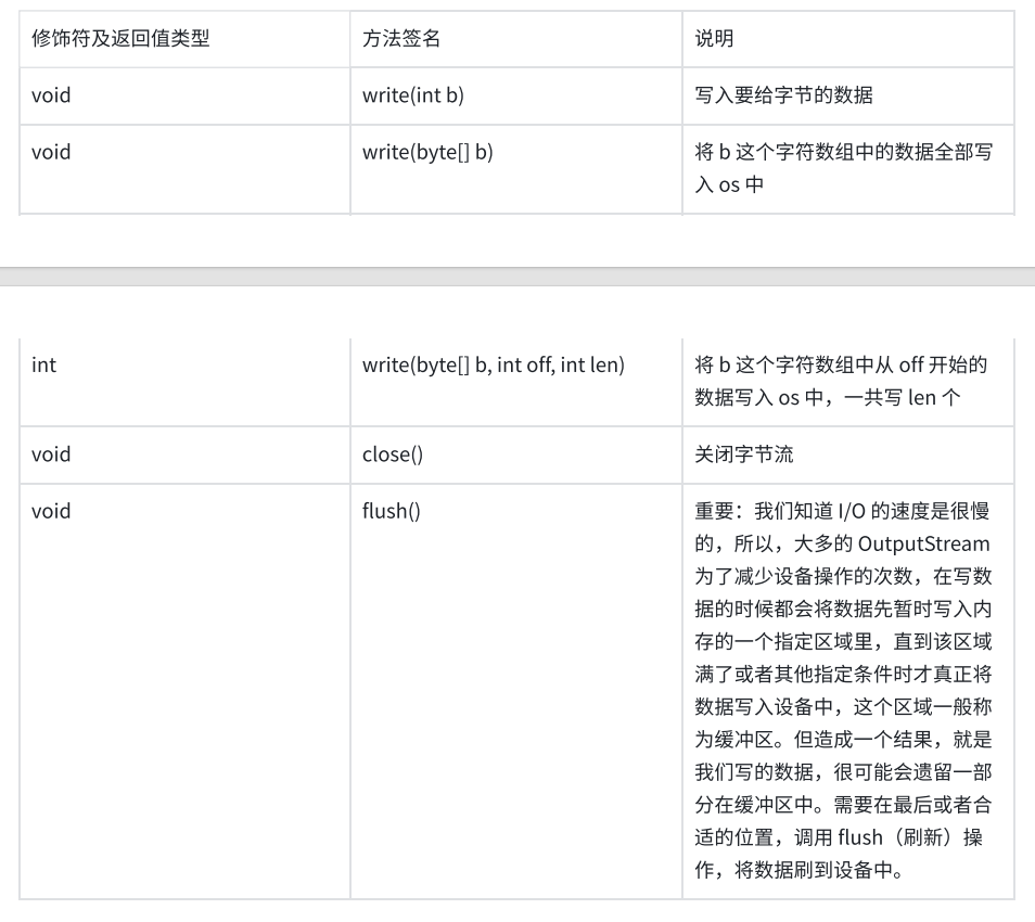 OutputStream 同样只是一个抽象类,要使用还需要具体的实现类。我们现在还是只关心写入文件中,所以使用 FileOutputStream.