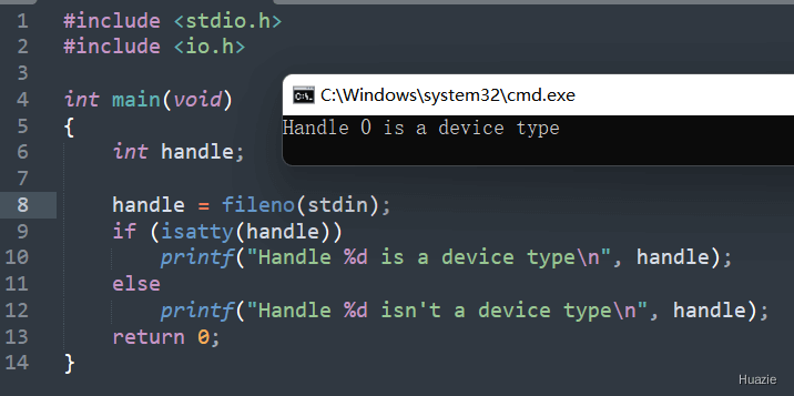 handle :文件描述符(file descriptor),例如:0(标准输入)、1(标准输出)、2(标准错误)。#include <stdio.h>