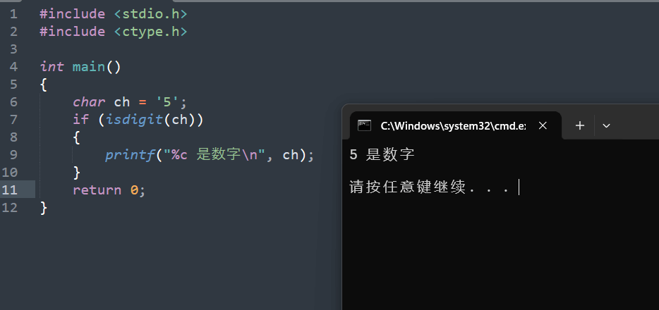 这其实同 C 语言的自动类型转换有关。 我们知道在 C 语言中,char 类型本质上是一种整数类型,它占用一个字节(8 位)的存储空间,用于存储字符的 ASCII 码值(或其他字符编码值)。例如,字符 'a' 的 ASCII 码值是 97。当将一个 char 类型的变量作为参数传递给 isalnum 这种期望 int 类型参数的函数时,C 编译器会自动将 char 类型的值提升为 int 类型。这种转换是隐式的,不需要程序员显式地进行类型转换操作。例如,当执行 isalnum('A') 时,字符 'A' 的 ASCII 码值 97 会被自动提升为 int 类型的 97,然后传递给 isalnum 函数进行处理。