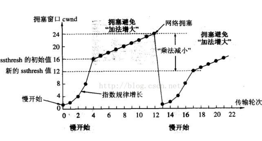 为了不增长的那么快, 因此不能使拥塞窗口单纯的加倍. 此处引入一个叫做慢启动的阈值 当拥塞窗口超过这个阈值的时候, 不再按照指数方式增长, 而是按照线性方式增长