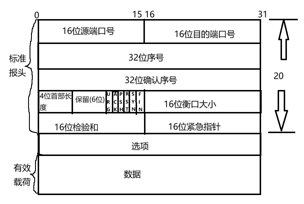 六个标志位与16位紧急指针 客户端发送给服务器TCP报文的时候,有各种请求,例如建立连接,正常数据通信,断开连接,这就导致TCP收到的报文有各种类型,不同的类型决定了服务器做不同的动作。 那么接收方如何得知报头的类型是什么?用的就是六个标志位。(标志位就是为了不发送数据,通过报头进行传递信息)