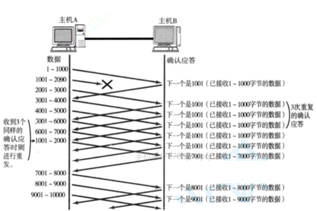这是丢失数据的补发方式,叫做快重传。 传输主机的欢动窗口会一直指向最小未被应答的数据,直到收到应答或者是超时才会继续向后滑动。 (超时重传就是兜底的)