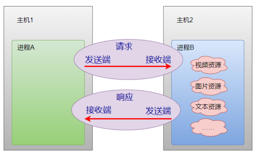 最常见的场景,客户端是指给用户使用的程序,服务端是提供用户服务的程序: ① 客户端先发送请求到服务端. ② 服务端根据请求数据,执行相应的业务处理. ③ 服务端返回响应:发送业务处理结果. ④ 客户端根据响应数据,展示处理结果.(展示获取的资源,或提示保存资源的处理结果)