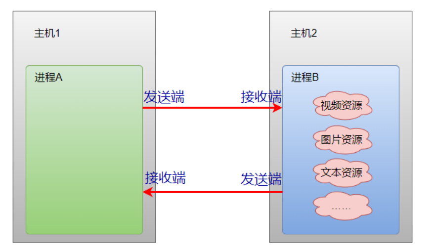 当然,我们只要满足进程不同就行;所以即便是同一个主机,只要是不同进程,基于网络来传输数据,也属于网络编程. 特殊地,对于开发来说,在条件有限的情况下,一般也都是在一个主机中运行多个进程来完成网络编程.但是,我们一定要明确,我们的目的是提供网络上不同主机,基于网络来传输数据资源: 进程A:编程来获取网络资源. 进程B:编程来提供网络资源.