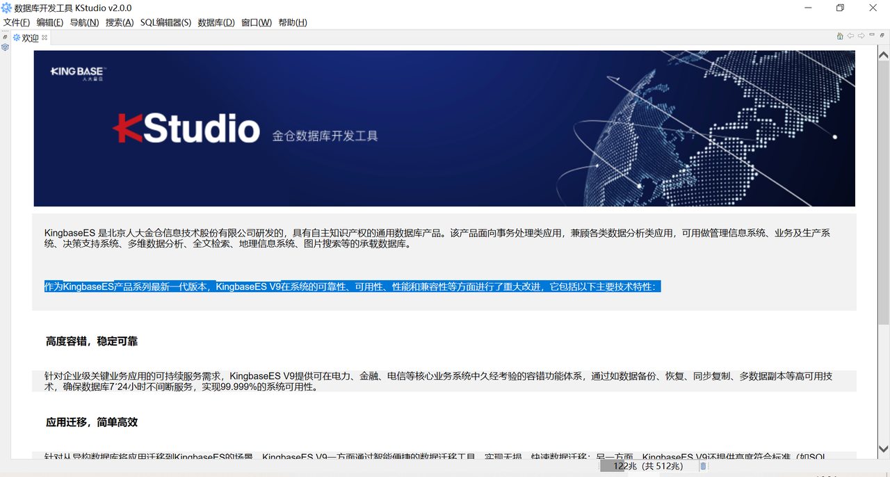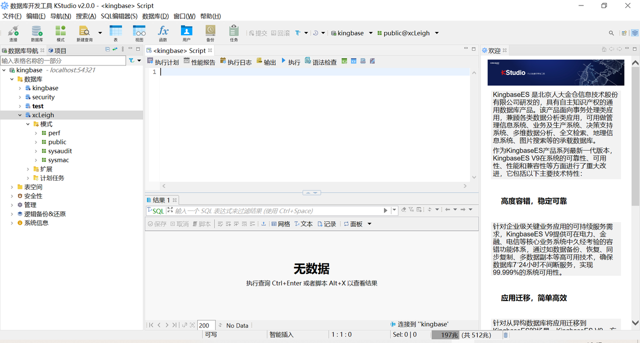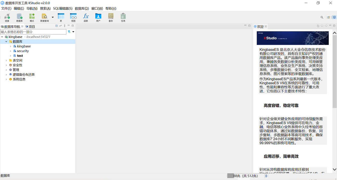 KStudio版本提供了全新设计的集成开发环境(IDE)和集成管理平台,能有效降低数据库开发人员和管理人员的使用成本,提高开发和管理效率。