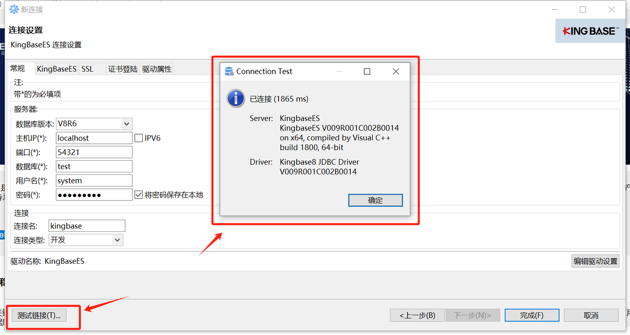 填写好密码,点击测试链接,提示连接成功,并展示服务版本配置和驱动相关信息。
