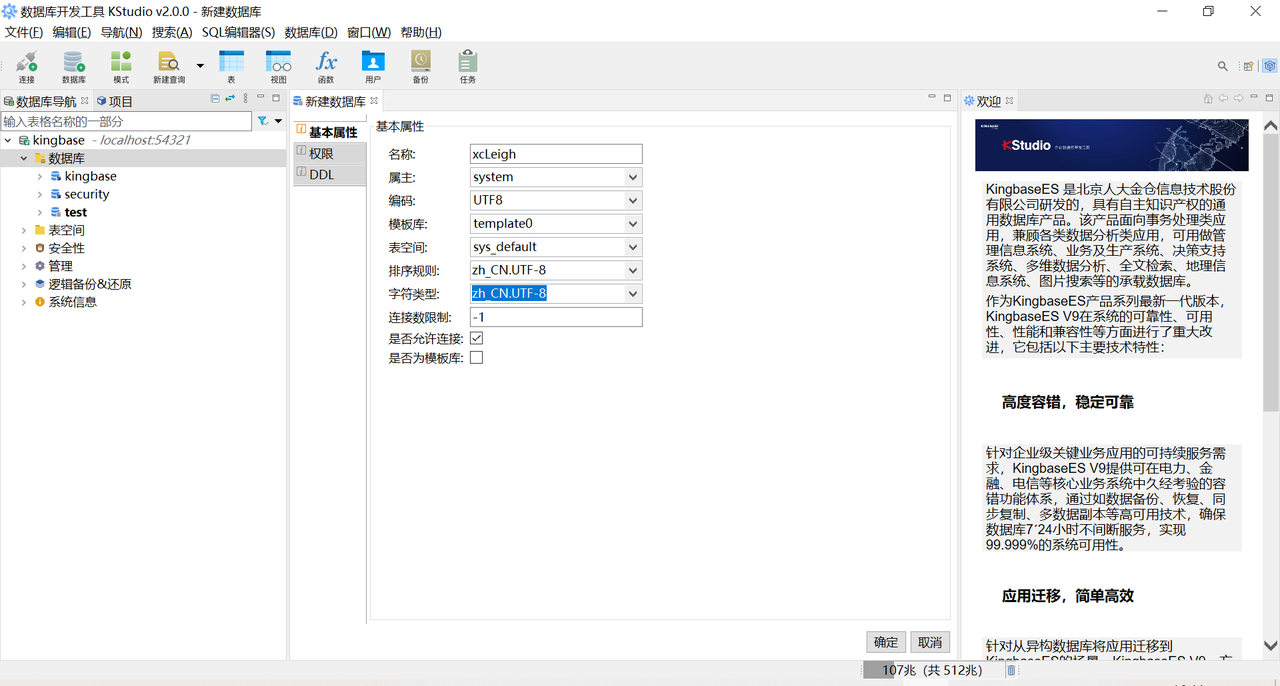 KingbaseES 是中电科金仓(北京)科技股份有限公司研发的,具有自主知识产权的通用数据库产品。该产品是面向全行业、全客户关键应用的企业级大型通用数据库管理系统,适用于事务处理类应用、数据分析类应用、海量时序数据采集检索等应用场景,可用做管理信息系统、业务及生产系统、决策支持系统、多维数据分析、全文检索、地理信息系统、图片搜索、时序数据等的承载数据库。 今天给大家出一个金仓数据库KingbaseES超详细安装使用指南,从数据库下载、安装到可视化IDE KStudio工具的建库及使用。