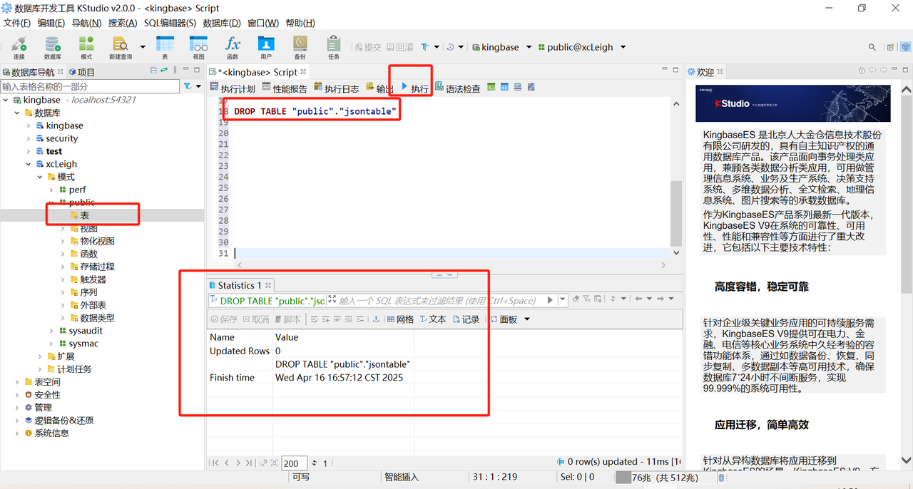 KingbaseES KStudio 是金仓数据库(KingbaseES)官方推出的专业数据库开发管理工具,提供可视化操作界面,支持数据库对象管理、SQL编辑与调试、数据导入导出、性能监控等功能。用户可通过KStudio轻松完成表、视图、存储过程等对象的创建与维护,并利用智能语法提示、执行计划分析等特性提升开发效率。同时,工具兼容主流数据库语法,支持多环境连接与批量任务处理,是DBA和开发人员管理KingbaseES数据库的得力助手,助力企业实现数据高效运维与开发。