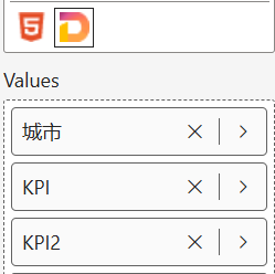 把需要展示的维度和指标拖拽到Deneb,本例维度为城市,绝对值为[kpi]度量值,率值为[kpi2]度量值: