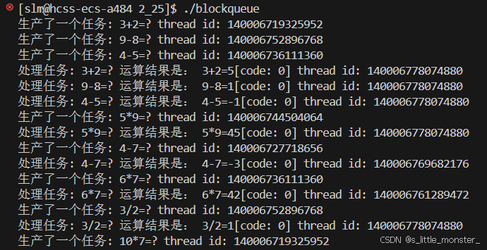std::cout << "处理任务: " << t.GetTask() << " 运算结果是: " << t.GetResult() << " thread id: " << pthread_self() << std::endl;