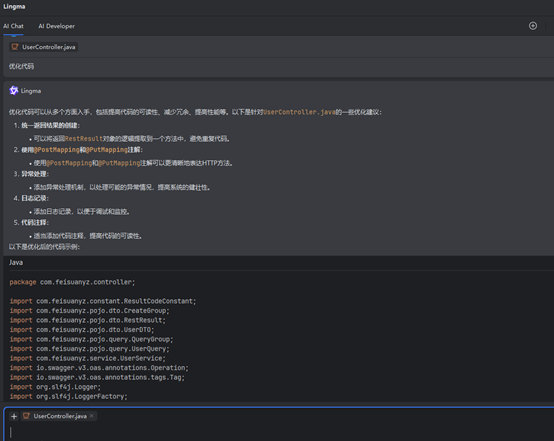 通义灵码在接收需求后,能生成部分与业务功能相关的代码片段,像用户信息实体类、简单的用户管理接口代码等。但在涉及 SpringCloud 分布式系统复杂架构部分,如配置中心完整配置代码、多服务复杂调用关系代码生成上,存在明显不足。生成的代码片段往往需要开发者手动大幅修改、补充完善,才能契合实际项目需求,距离一键生成完整可用的工程级代码尚有较大差距。