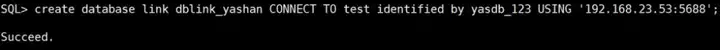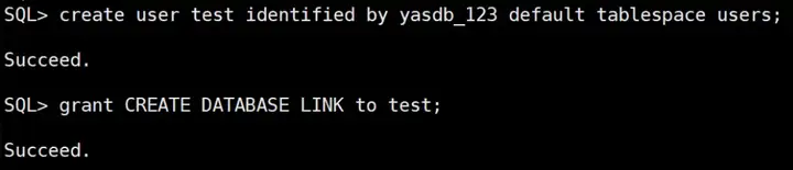 create user test identified by yasdb_123 default tablespace users; grant CREATE DATABASE LINK to test;